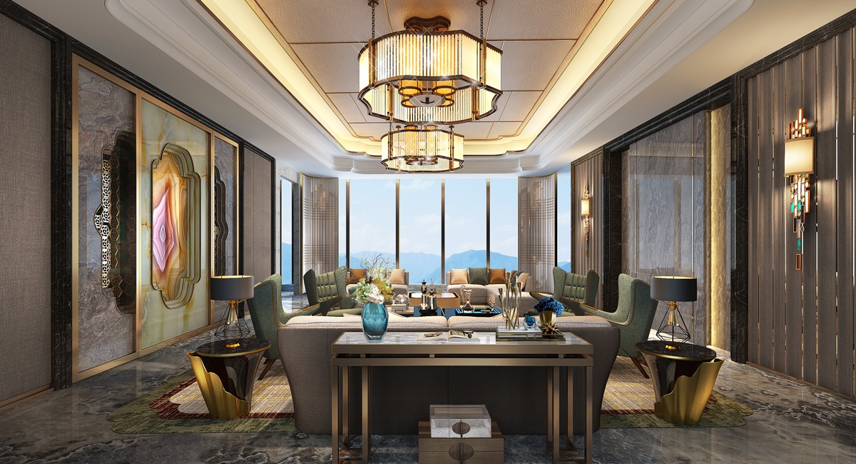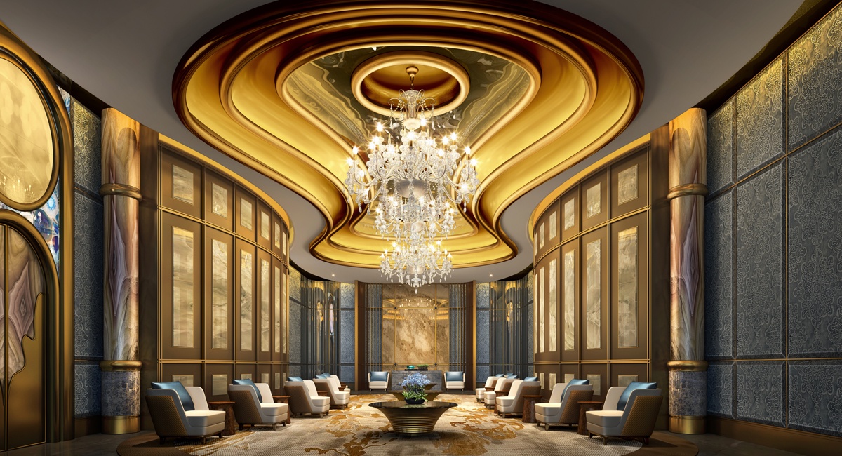極致奢華——整體的設計構思,特殊的材料工藝,獨特的設計語言營造出高檔大氣的酒店空間。